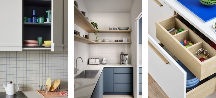 This is where you get into the nitty-gritty of design, and specifically, how your kitchen is going to function as a space. You’ll need to allocate storage, considering everything from food and utensils to cleaning products and waste, as well as resolving how everything will be arranged, so you can move efficiently between work surfaces, sink and appliances. If that sounds like a lot of work, don’t worry – there’s no need to reinvent the wheel. Our Kitchen Design and Renovation Guide includes six popular layout options, as well as a range of pantry and drawer designs that you can adapt to your own home.