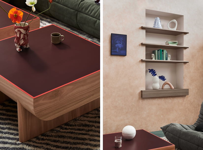 Coffee tables: Laminex Kalamata and Tasmanian oak veneer