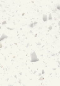 HI-MACS Gemini is a white base with soft white, grey and translucent chips of varying size.